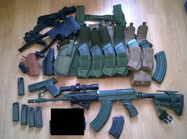 В комплекте с карабином – 8 магазинов на 30, прицел, разгрузочный жилет с подсумками ну и множественные доработки самого карабина (приклад, цевье, прицелы, кнопка сброса магазина, кнопка ЗЗ, предохранитель и т.д), список выше. Также покупателю карабина примерно 300 патронов различных производителей, часть в обоймах по 10.